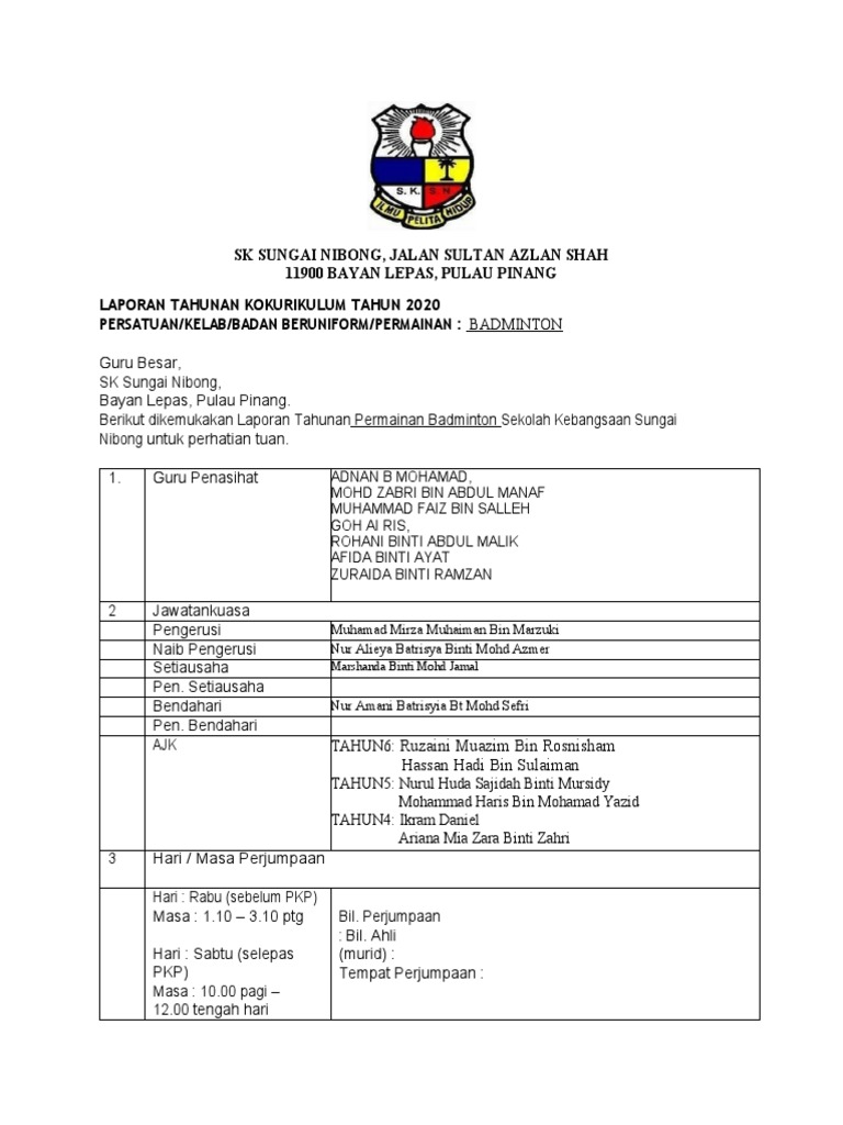 Format Laporan Kelab Permaianan Badminton Tahunan 2020 Pdf
